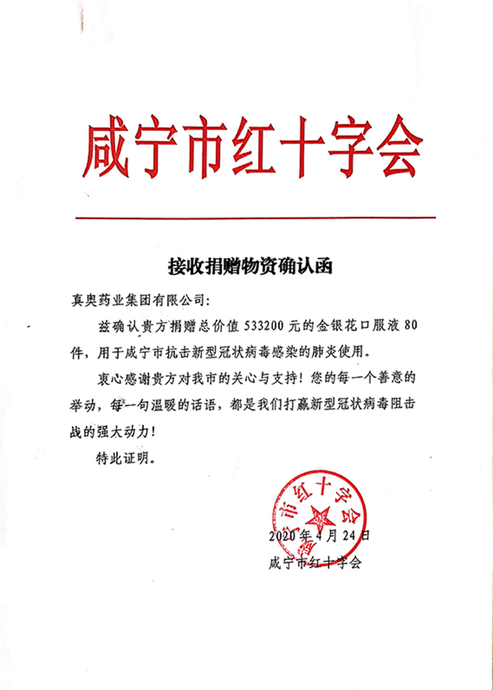 接收捐贈物資確認函